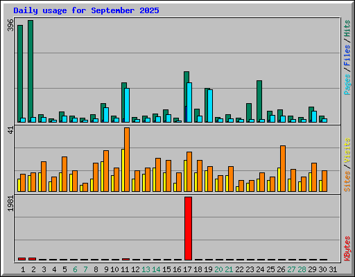 | Day | Hits | Files | Pages | Visits | Sites | KBytes | ||||||