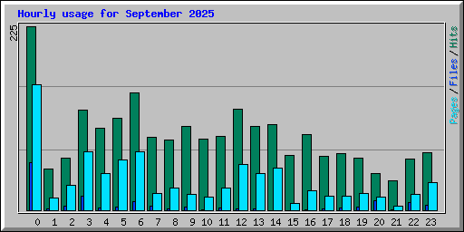 | Hour | Hits | Files | Pages | KBytes | ||||||||