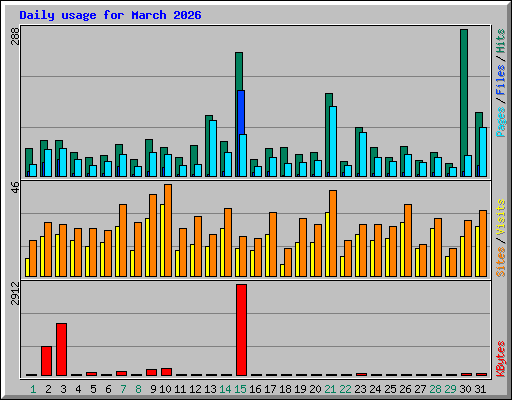 | Day | Hits | Files | Pages | Visits | Sites | KBytes | ||||||
